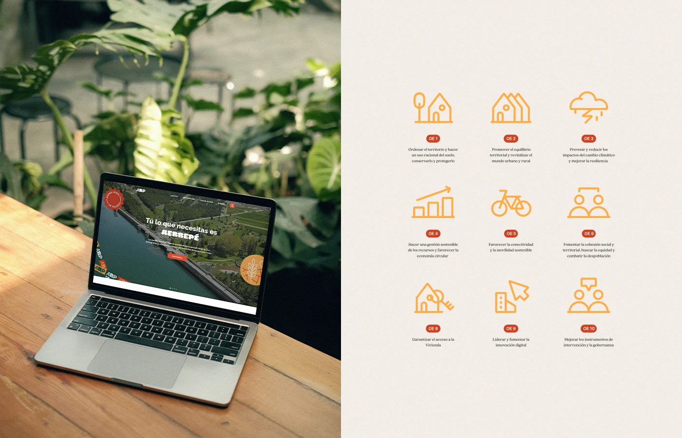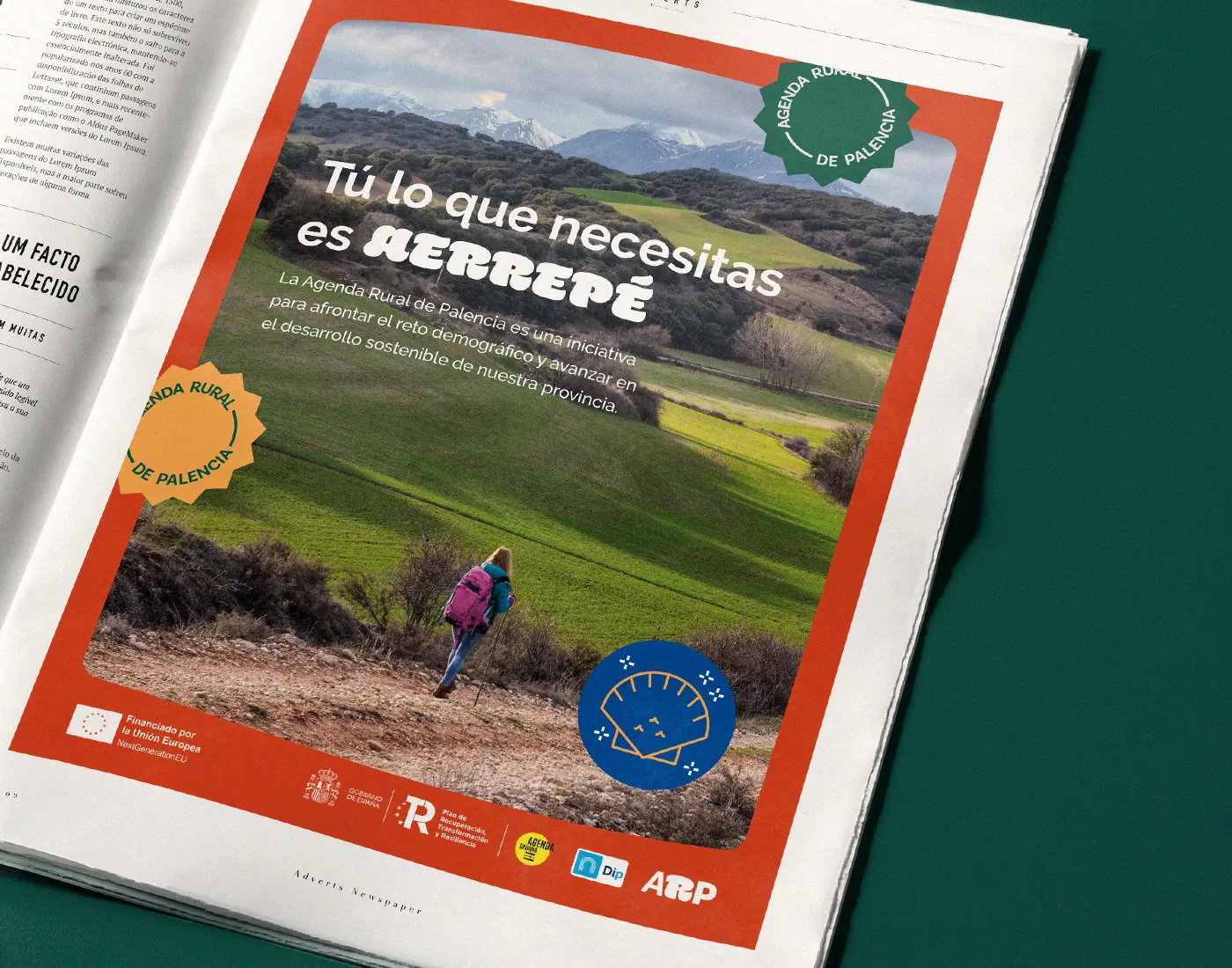 En este proceso de construcción de marca, imaginamos un universo gráfico basado en tipografía y “stickers” capaz de transmitir mensajes directos (tú lo que necesitas es aerrepé) a la vez que generábamos un entorno digital en el que se pudiera seguir de forma transparente las diferentes iniciativas, objetivos y acciones de la Agenda Rural de Palencia.
